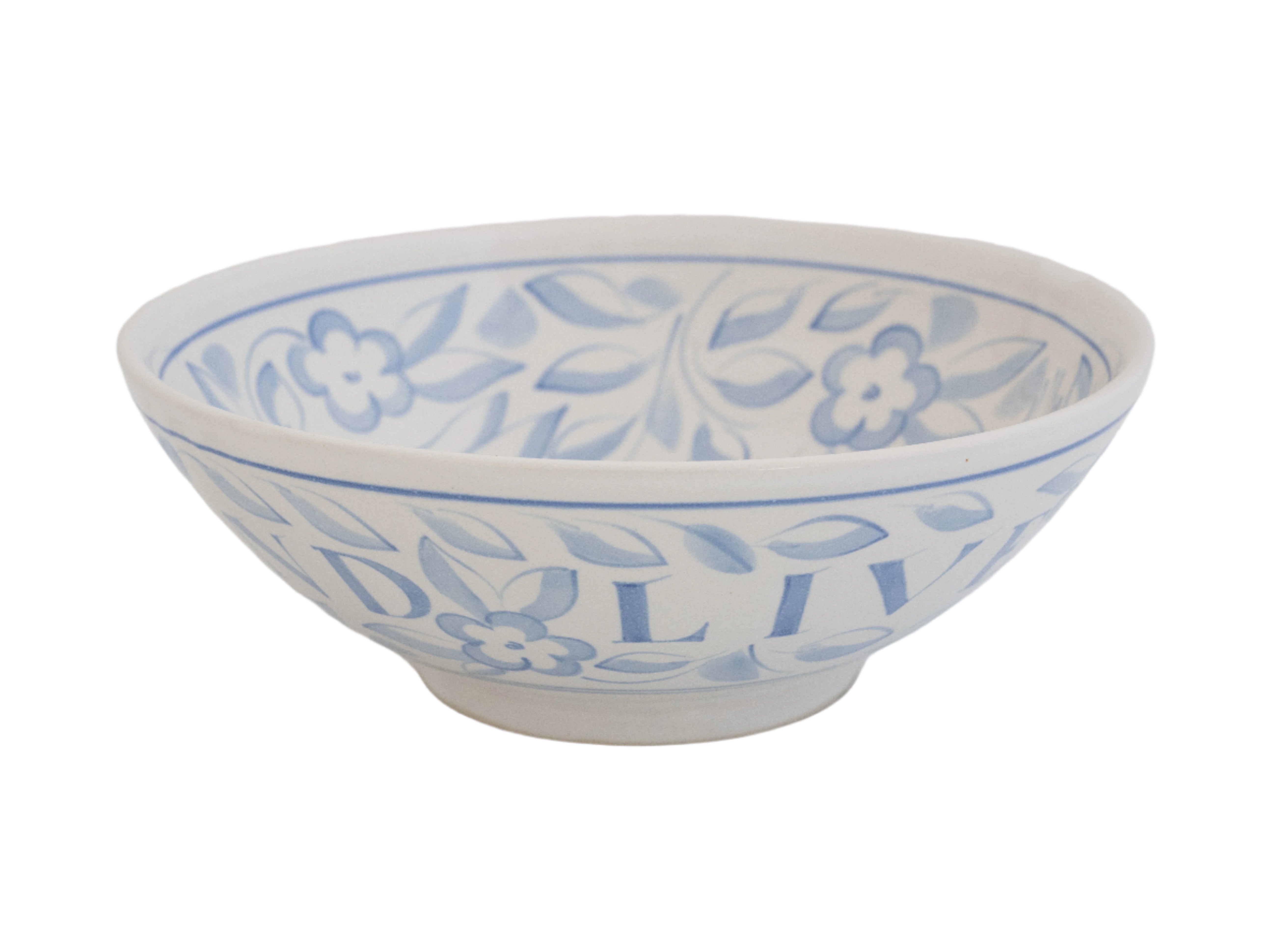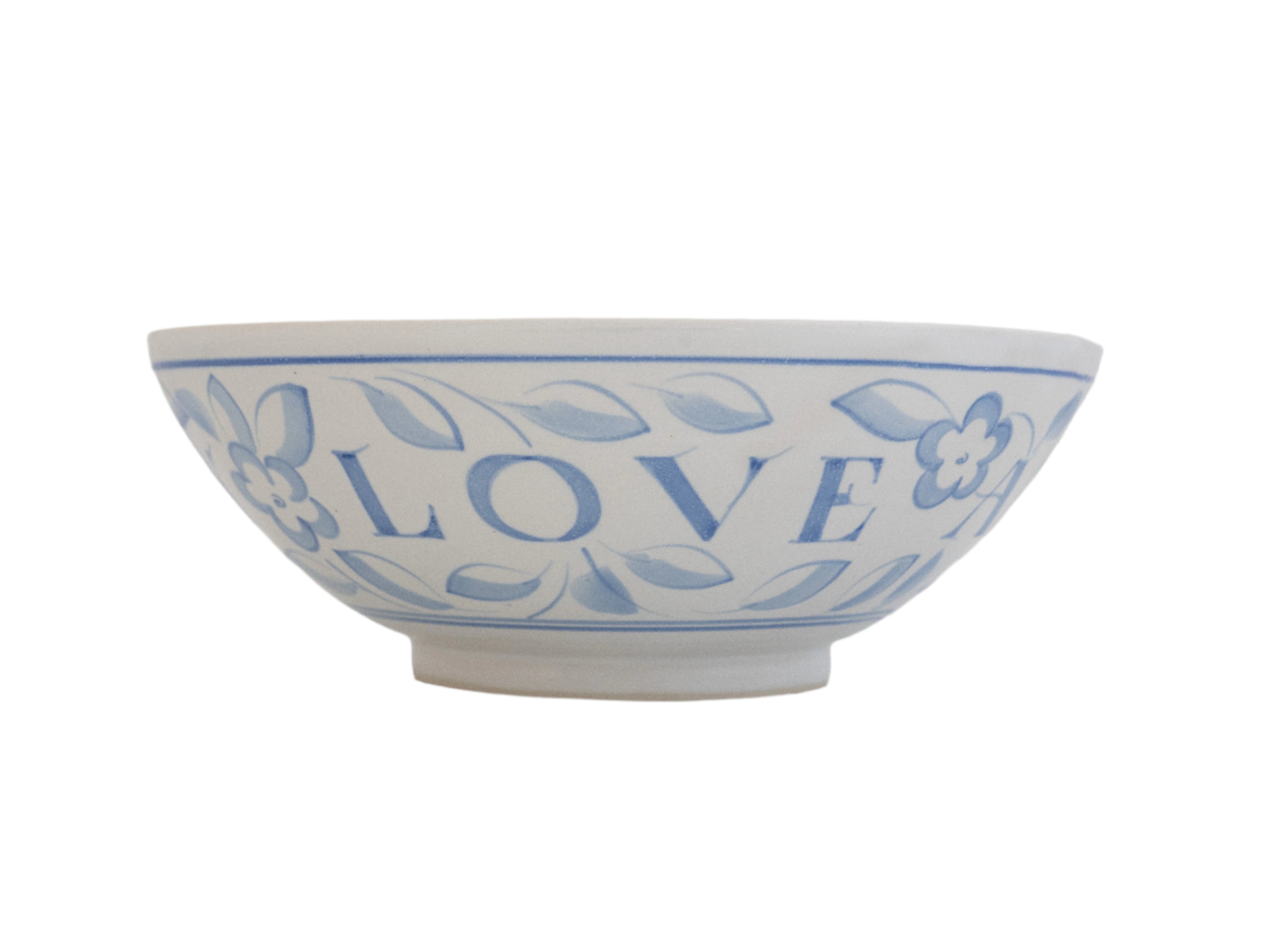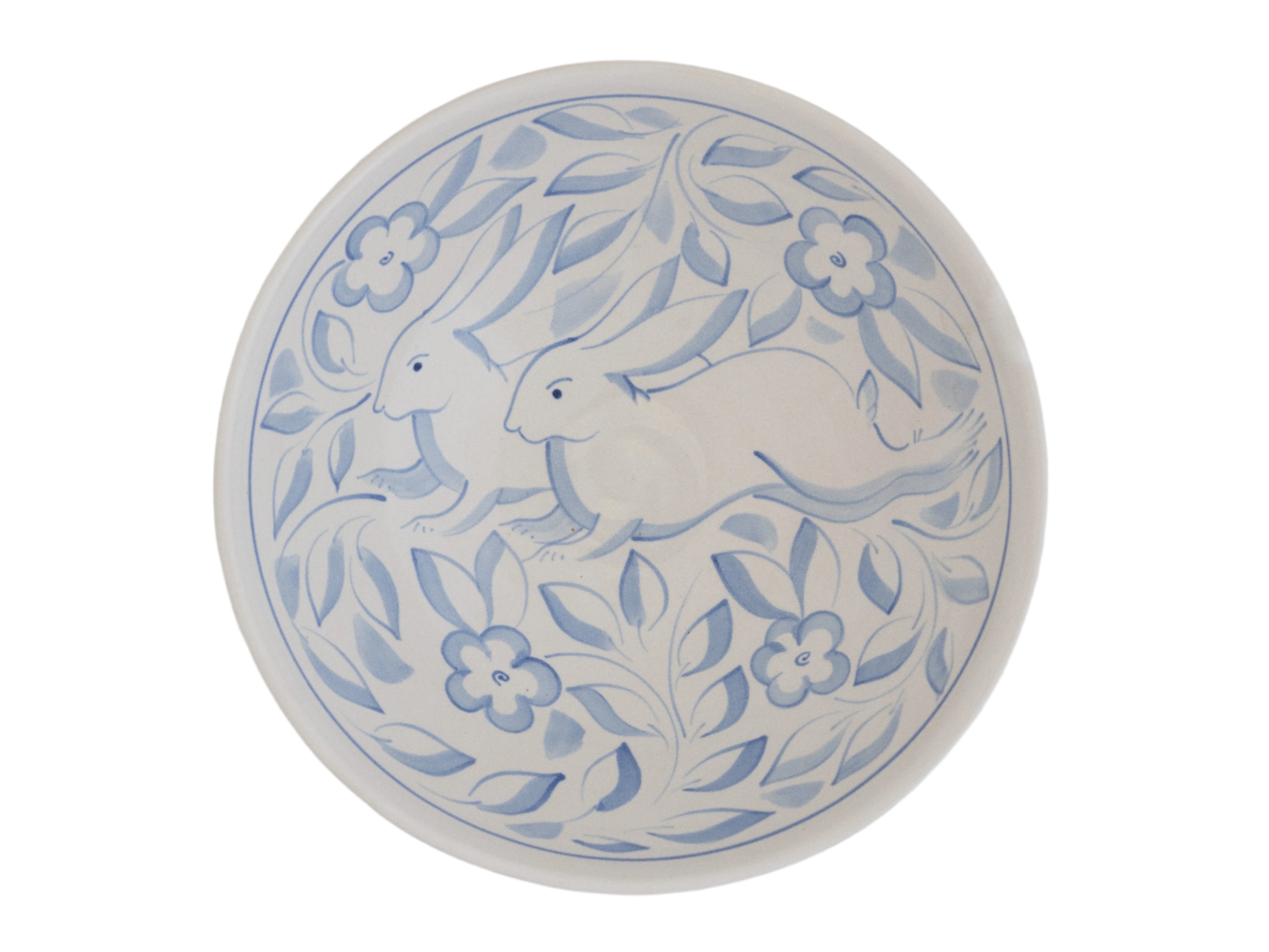 Each bowl is embellished with the Tree of Life, Rabbit, Love Birds, or Peony decoration. They are hand painted in cobalt blue on our majolica white stoneware glaze. The perfect gift if you are in a hurry!