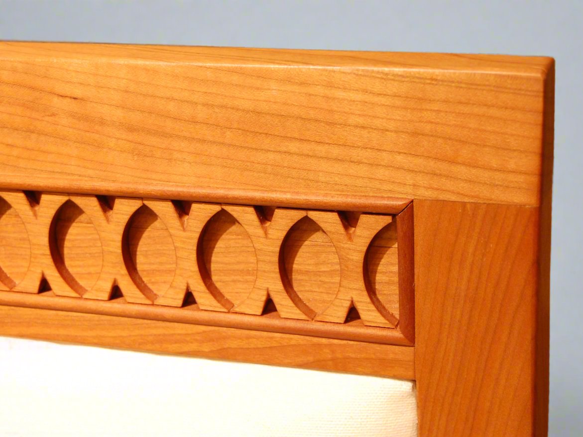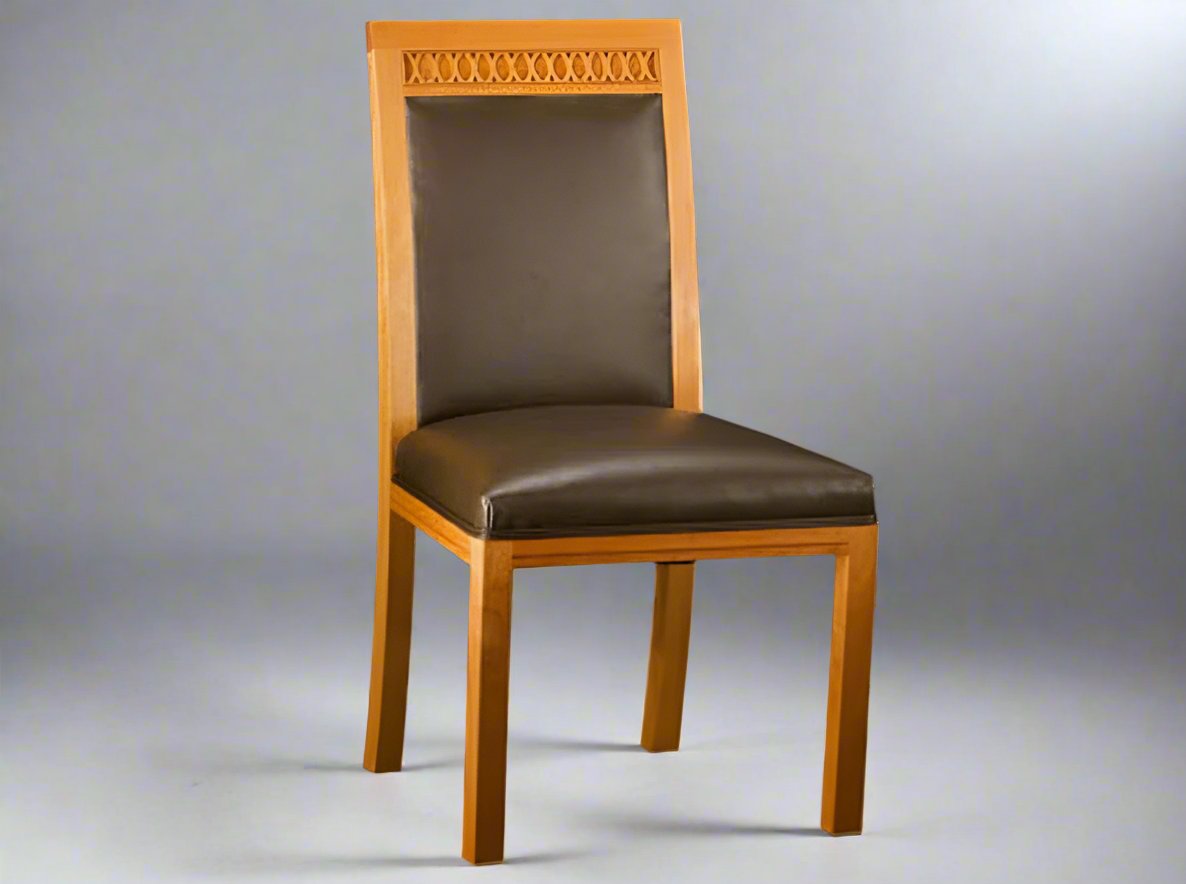 Sink into the luxurious comfort of the Anna Liffey Carver Dining Chair. The high, upholstered back with its hand-carved "x" pattern provides exceptional support, while the hand-tied, fully sprung seat cushions you in comfort. The double welting and thumbnail edge add a touch of refined style. This chair is perfect for lingering over long meals and conversations.