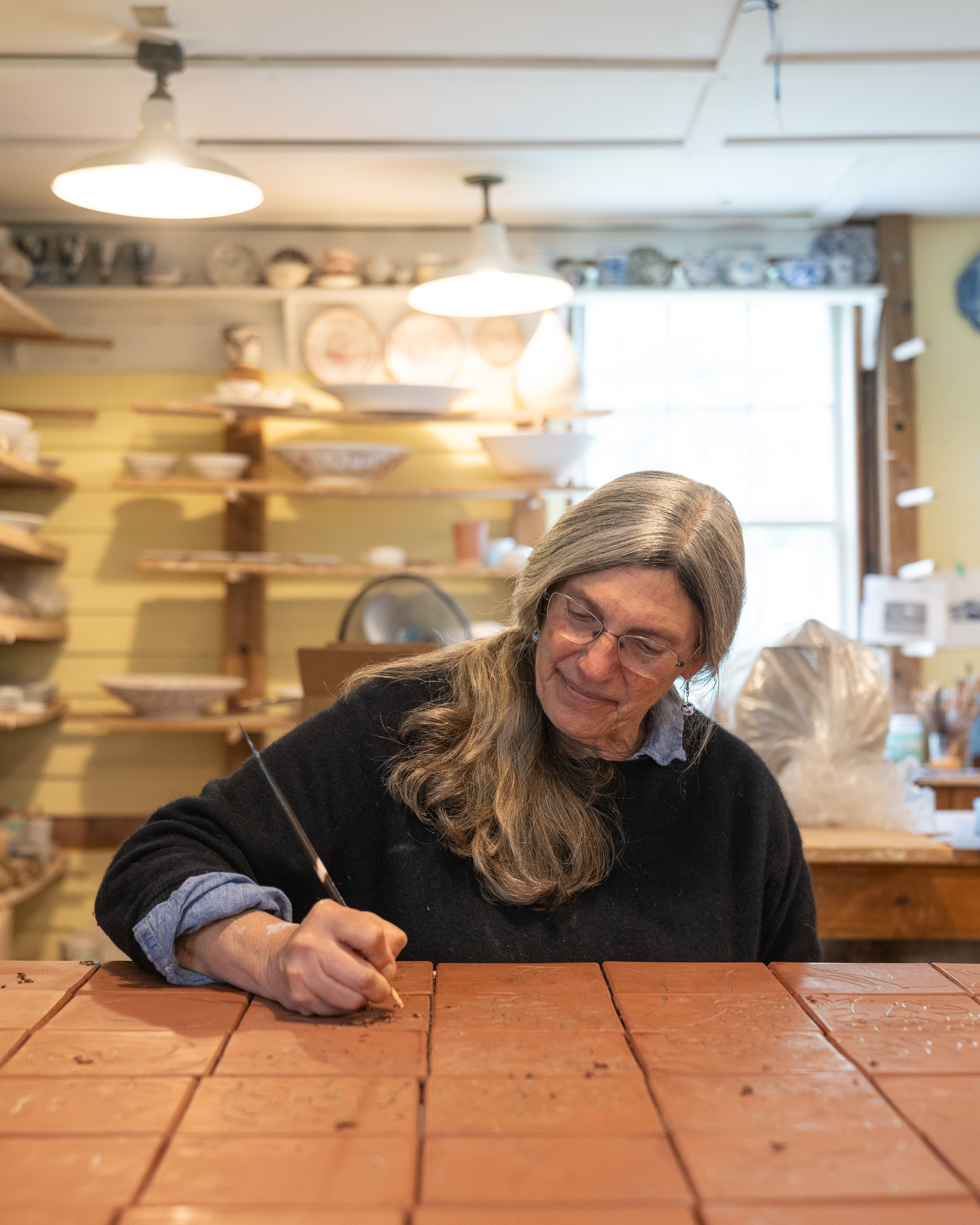 Miranda Thomas was born in New York and raised in Italy, Australia, and England, where she completed her training with the master potters Michael Cardew and Alan Caiger-Smith.