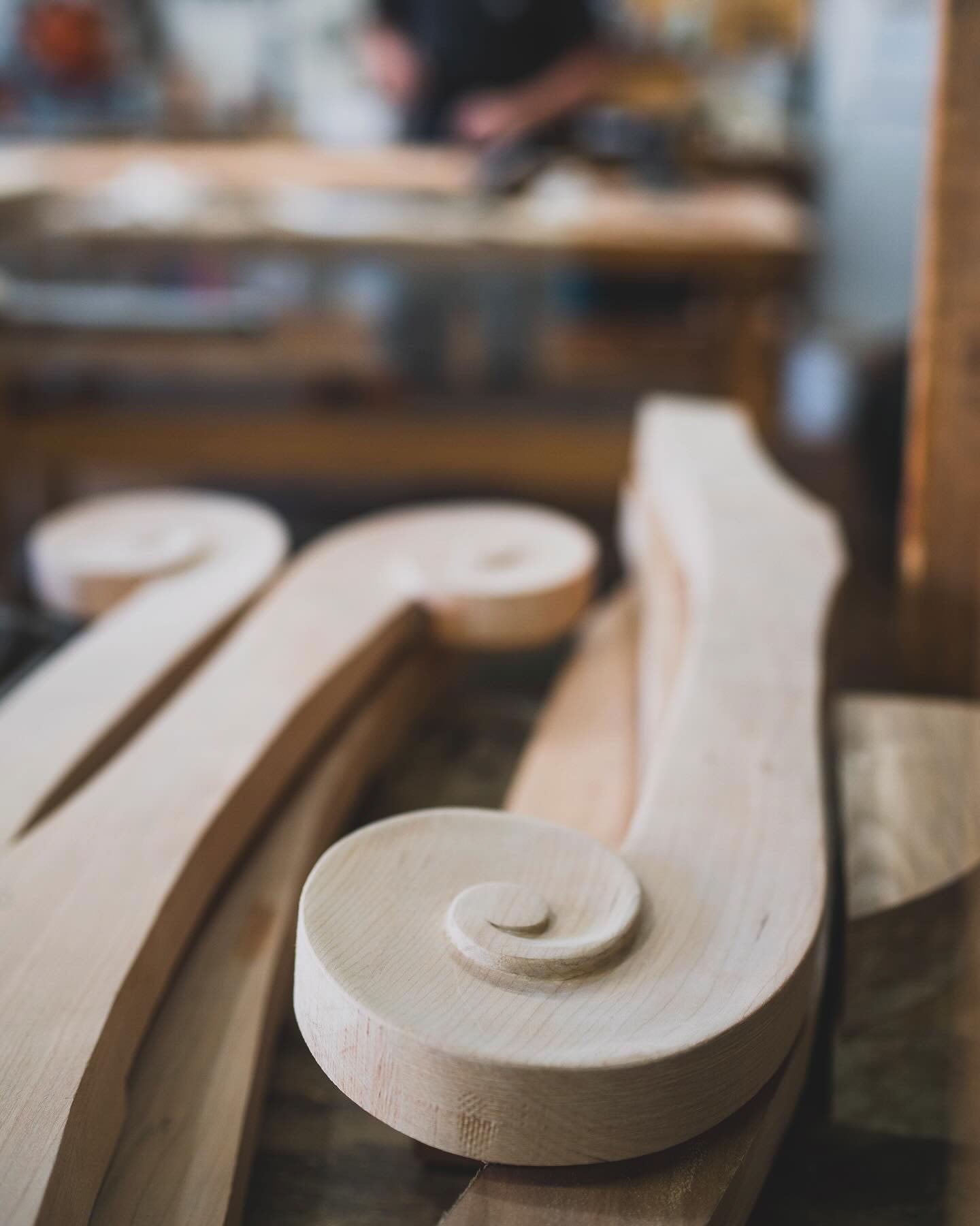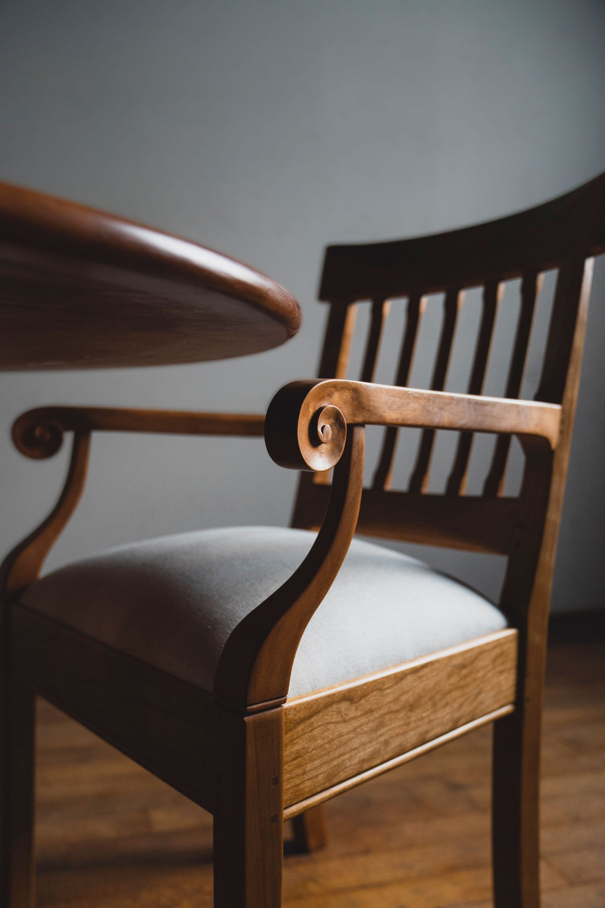 There was a wonderful older gentleman friend and mentor, Ned Coffin, who came into my rather dark basement shop shortly after I had begun to make furniture in 1986 to see what I was up to, and I imagine, to give me some encouragement. His family had been in a large furniture manufacturing business, and he, like many of my best mentors, were very skeptical of this choice of profession. They worried especially for Miranda and our joint (financial) fate. It is amazing how you remember, far back, one comment from a book or a person, that sticks with you. He said, “a great piece of furniture should make you smile”. Such a wonderful and important piece of advice. I think the curl does just that, and it has been an iconic signature of much of our work. What is more, it shows off our great hand work skills, and the character, (previously described) that goes with it. I based the curl on the Nautilus shell and the Fibonacci sequence, (which you will have to look up on your machine). It is magical. Another important word!