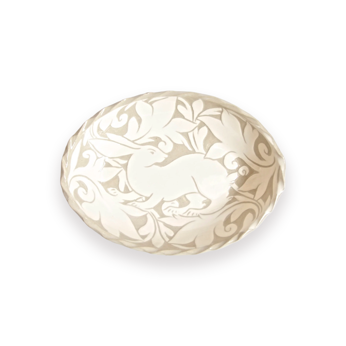 The rabbit has long been the symbol of spring, one of Miranda’s classic patterns representing prosperity, optimism, immortality and fertility. The rabbit is thought of as cunning and able to escape bad luck.