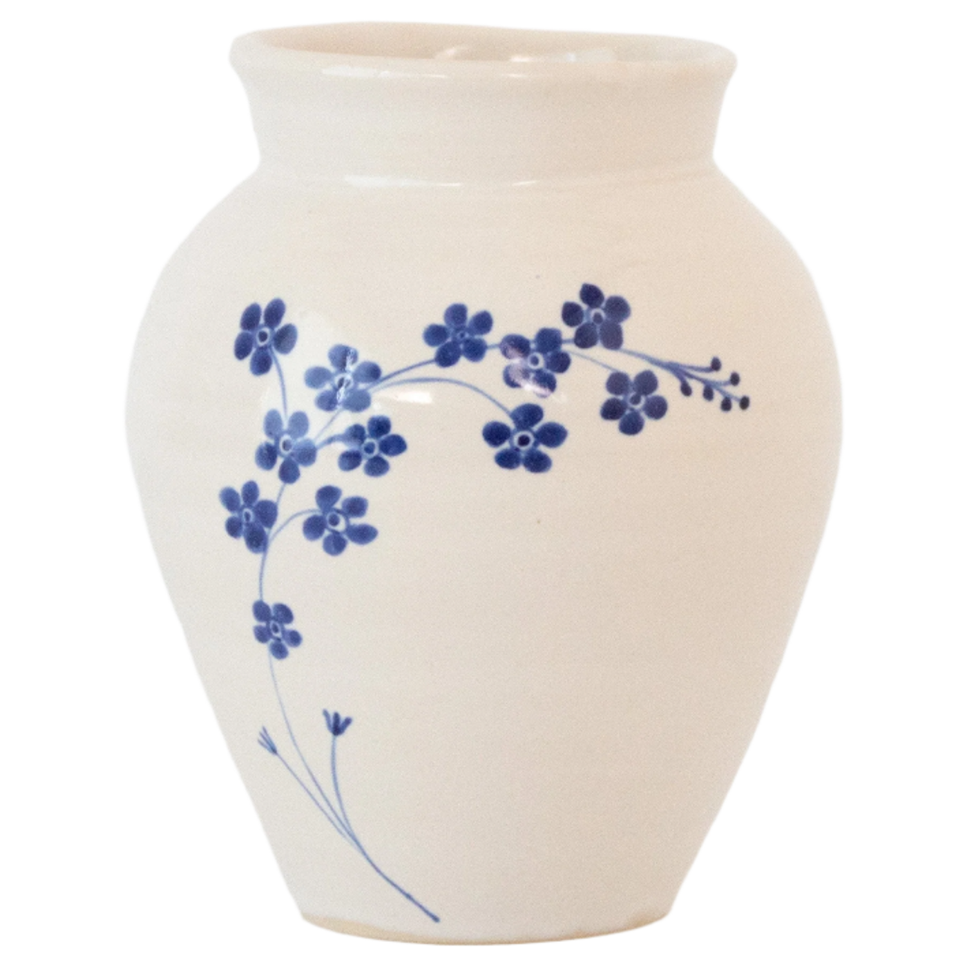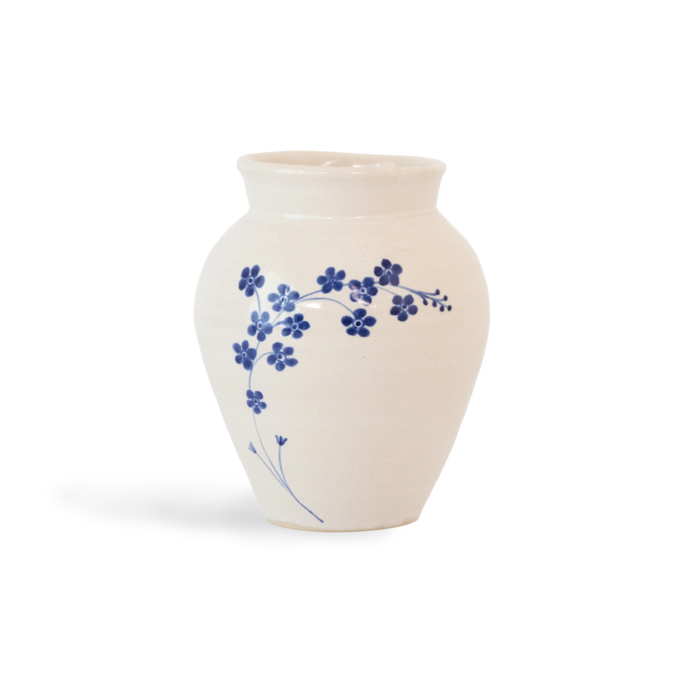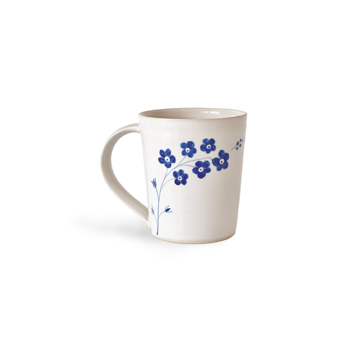 The forget-me-not, Myosotis scorpioides, symbolizes unending true love, respect, and loyalty. These beautiful flowers, the delights of spring when picked and pressed near your heart, will hang on and prove their faithfulness. This collection is hand thrown out of white stoneware and individually painted in deep blue cobalt pigment on our pristine white glaze. They are a promise of beauty and remembrance.