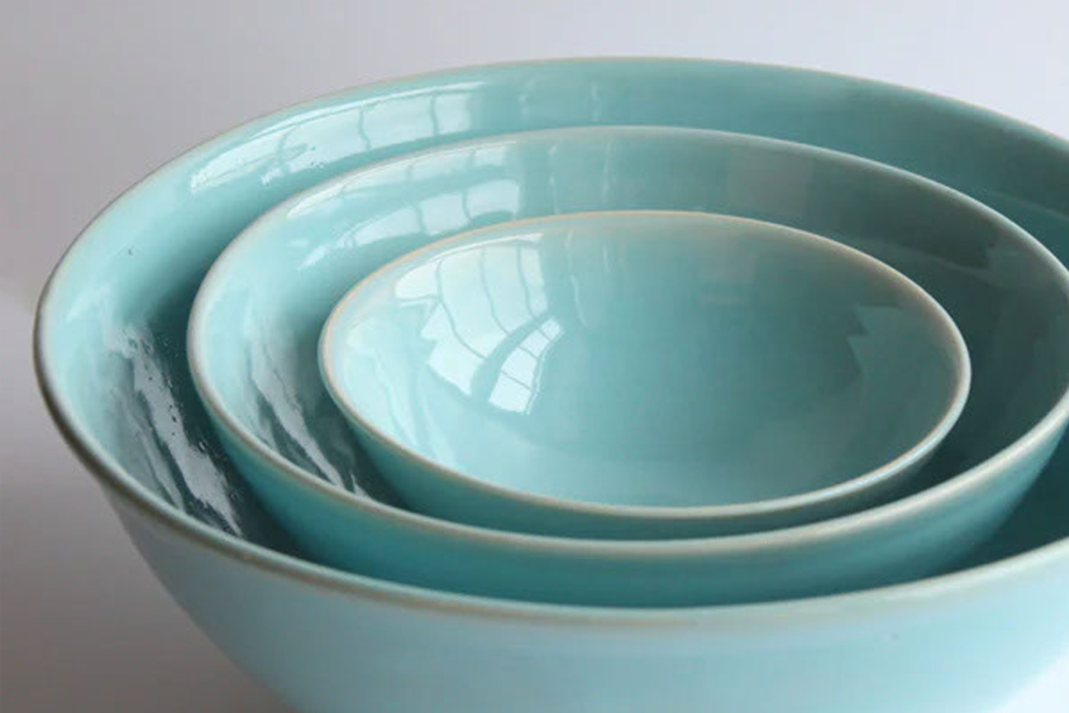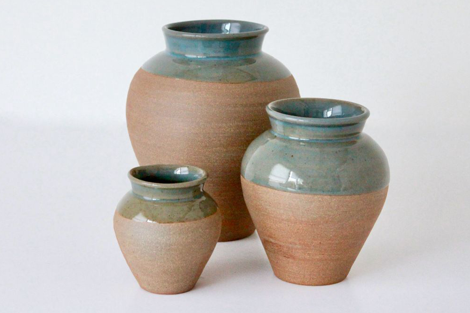 This collection is a celebration of contrasts: the matte raw stoneware clay with the high gloss glaze; the warm clay color with the cool green-blue. It reads as both traditional and modern, making it a perennial favorite.