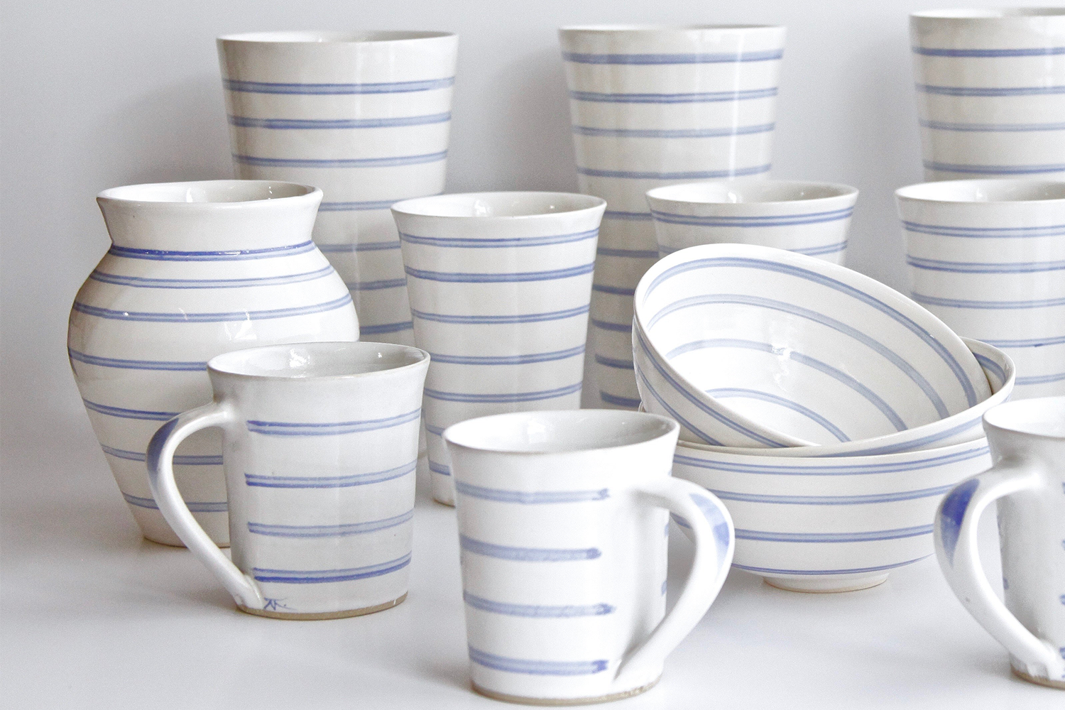 “I have always loved stripes- they are cool, fresh, and modern. I also love painting them, lots of them. The white is a creamy white, and the blue, a wonderful cornflower summery blue. They remind me of the seaside, summer kitchens, ready to hold and serve fresh flowers and delicious morsels picked from the garden." - Miranda Thomas