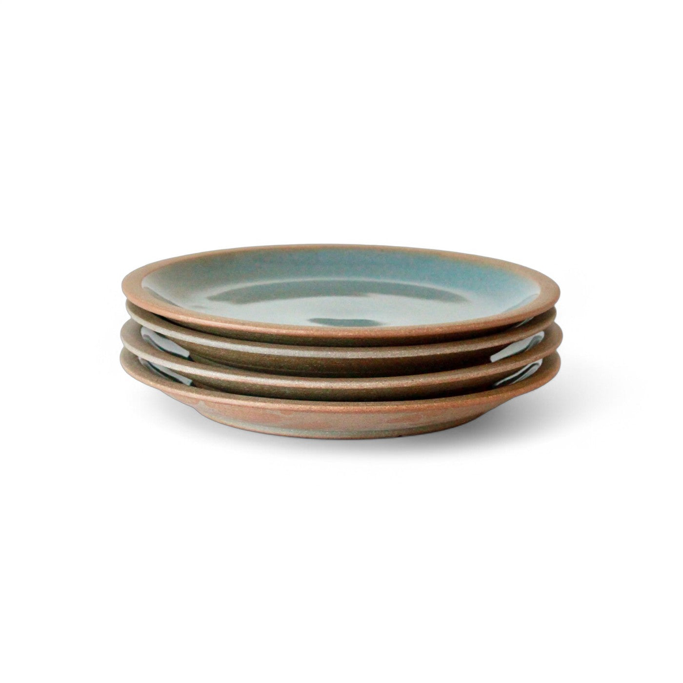 The Devonshire collection is a stoneware interpretation of traditional Devonshire (SW England) style of pottery that features both raw clay surface with interior and edges glazed in shades of deep celadon green.