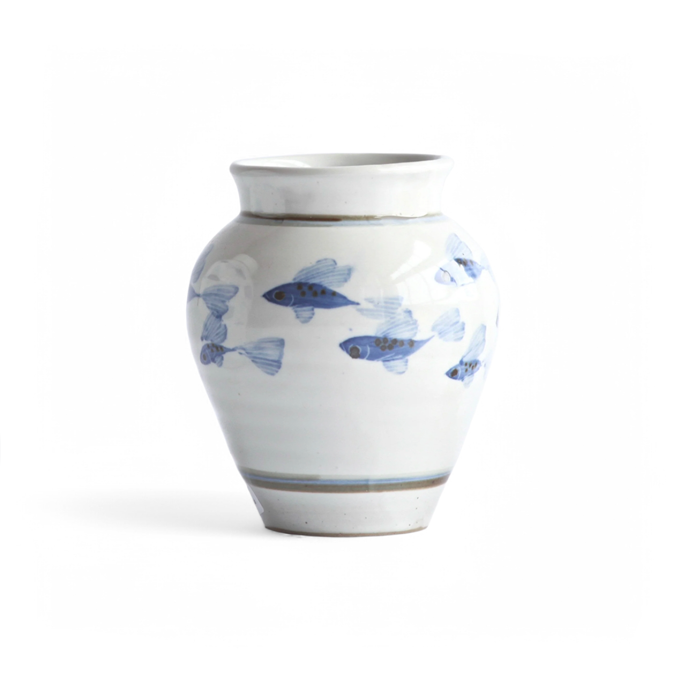 With this range of pottery Miranda uses a white opaque glaze, on semi porcelain, and paints in a soft cobalt blue. These pots have a feeling reminiscent of English delftwares. This she highlights with tiny touches of brown for depth.