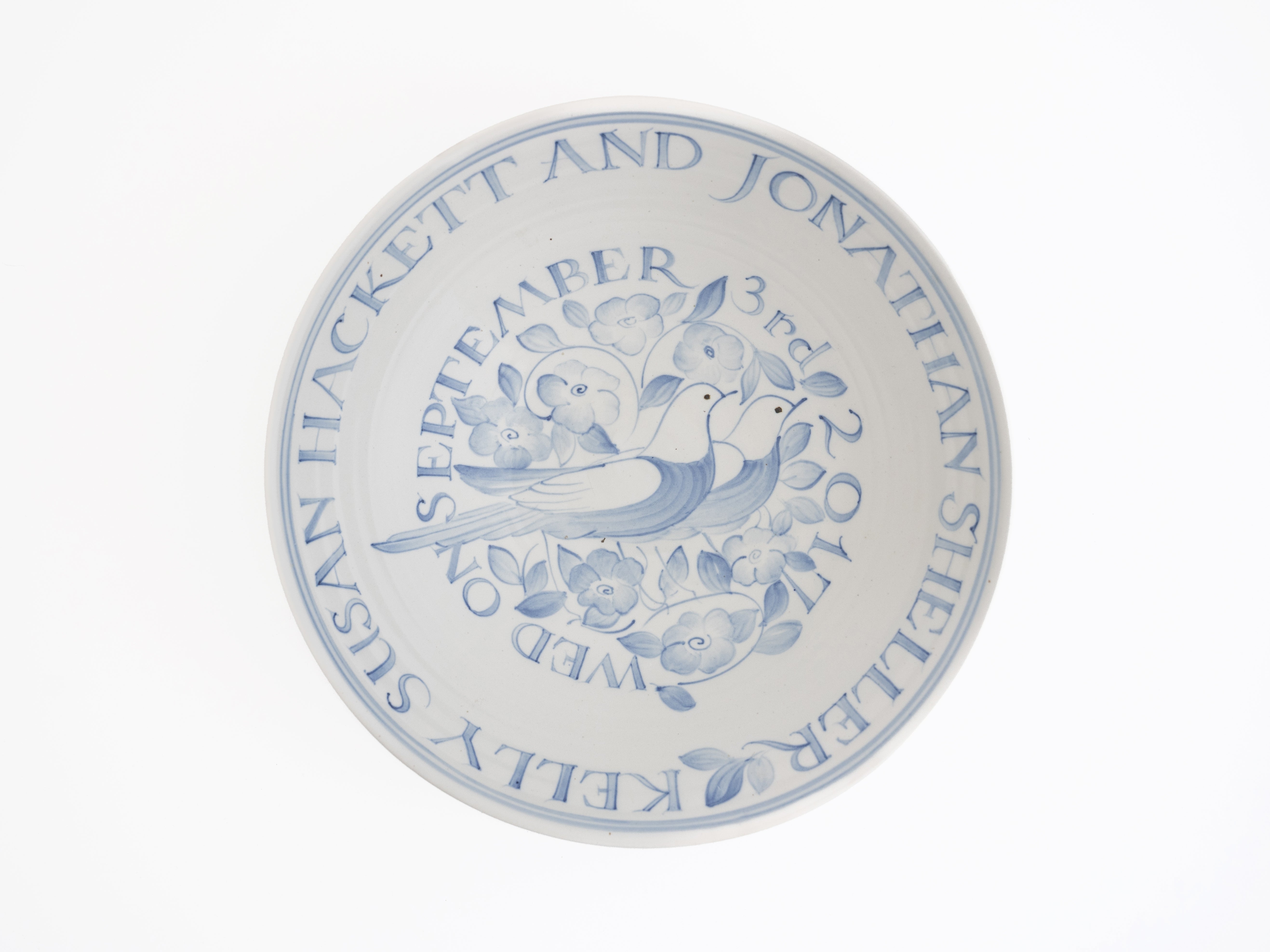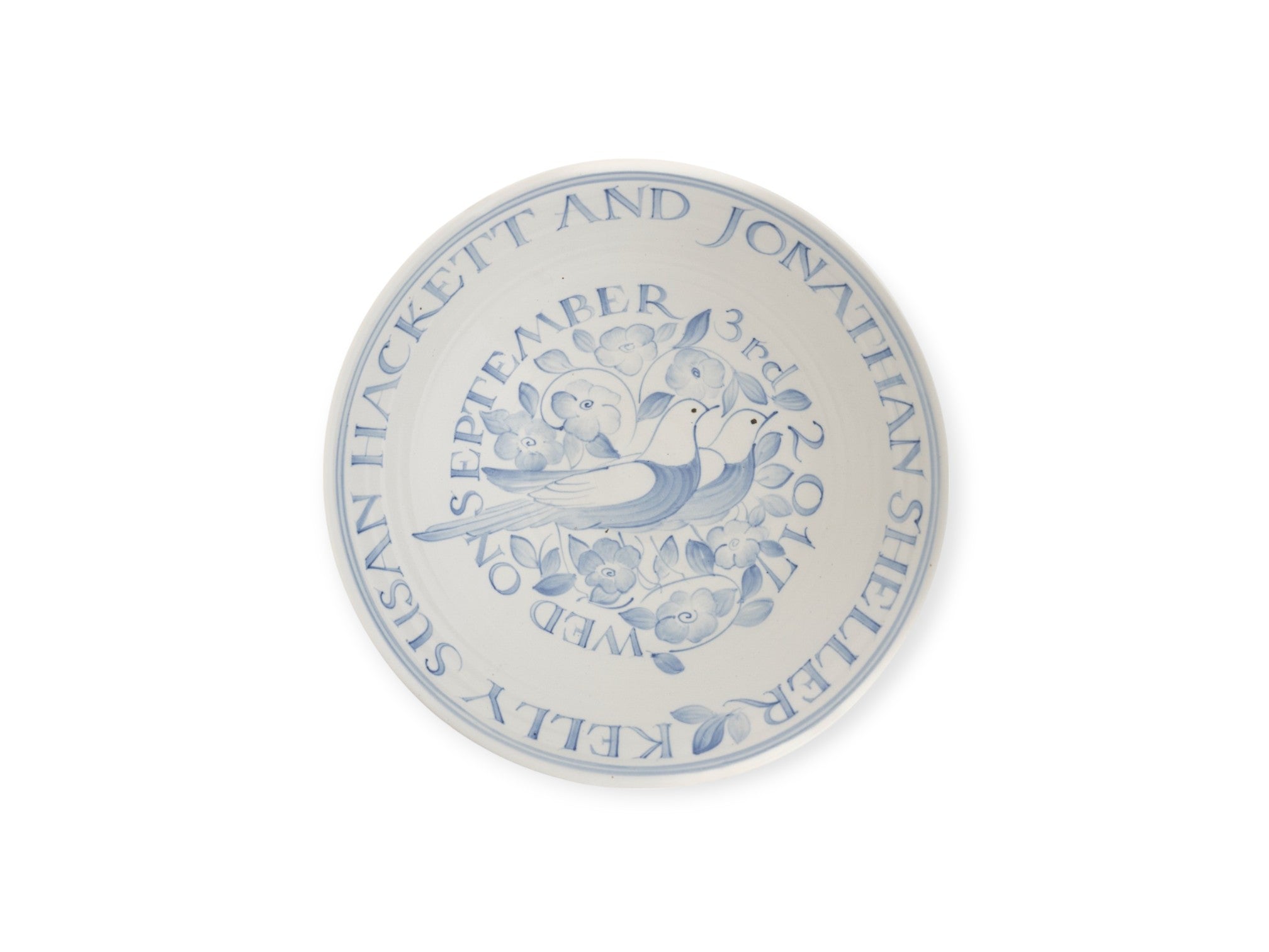 The couple's first and last names are hand painted on the inside of the bowl, with the date of the event (example: May 20th 2025) and a standard decoration of choice at the center.