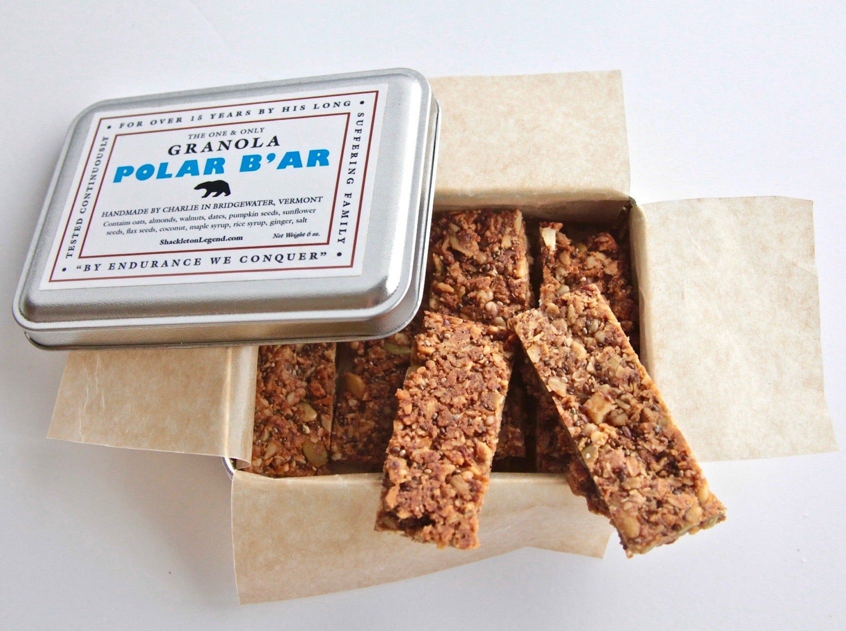 What else would a Polar Bear most like to eat to endure the the most tortuous conditions in the world and be able to fight tooth and nail for their survival. Packed with 12 energy giving ingredients such as Nuts, Oats, Seeds, Real Vermont Maple Syrup and shredded coconut. Slightly chewy so they will hold together well whilst sledding across the pack ice.
